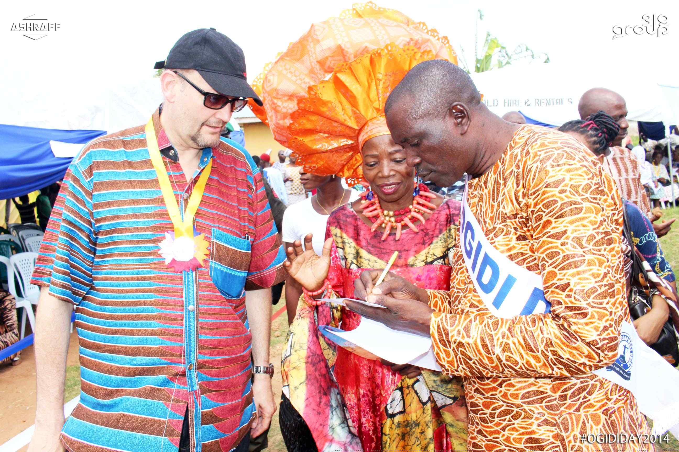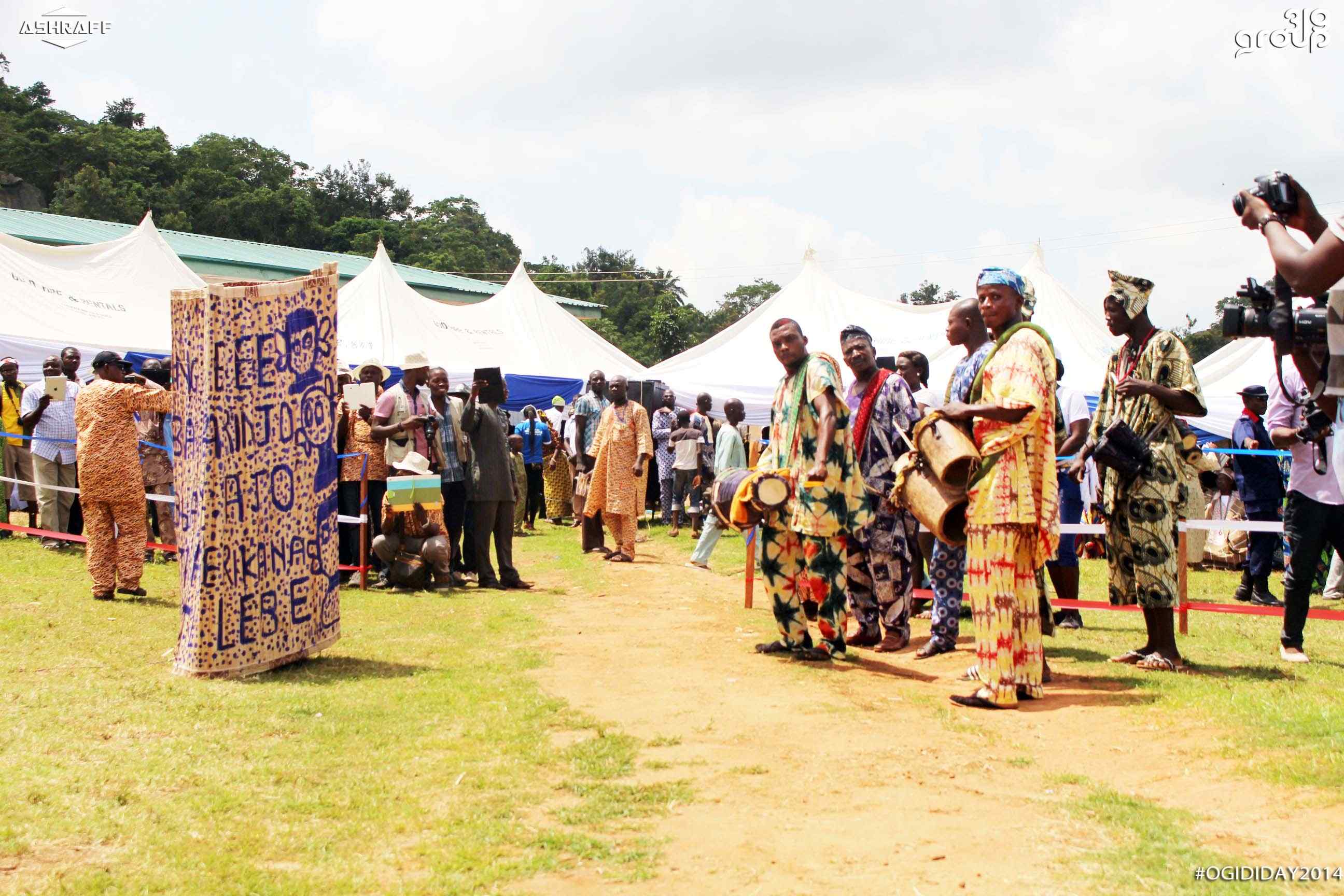 On Saturday which was the D day of the OGIDI Event was a really huge one it was graced by dignitaries around the world. The event which started by 10:00am with an opening prayed thereafter an opening performance by a cultural troupe. After the introduction of dignitaries, they had cultural displays to the OLOGIDI, HRH Oba (Alh.) Rabiu Oladimeji, The Ologidi of Ogidi by different amazing groups from the community and other communities. These presentations were truly awesome. Some of the displays were from the Olokoro and Olu-otun, men, women, farmers, hunters…. etc Also we had the masquerades who came out to grace the event, of which were “Agere masqurade, Olode, Agbo” cultural displays were also presented by the Ebira community, Nike Art Gallery Troupe, Egbe Gbarufu Ilare-ogidi group etc. The occation was graced by The Representatives of The Etsu of Nupe, Prof. Eyitayo Lambo (Fm r. Minister of Health) who was the Chairman of the occasion), HRH Oba (Dr.) Arc. Aderemi Adedapo (Alayemore of Ido-osun), Hon. Tajudeen Yusuf (Member House of Reps), Hon.Dino Melaye (Fmr. Mem. House of Reps), Mallam Mohammed Haruna (Fmr MD, NAN), Dr Abdulahi Muku (Dir. Gen. National Gallery of Art), Chief Mrs Nike Okundaye (Yeyeoba of Ogidiland, Nike Art Gallery, Lagos) who was the Mother of The Day was with His Excellency, Mr Michael Arion, the Ambassador and head of delegation of the European Union. Her daughter Sheyi, Chief Femi Ajisafe (General Manager, Research Planning & Environmet, National Inland Waterways Authority), Miss Simisola Banjo (Sisi Oge 2014) among others