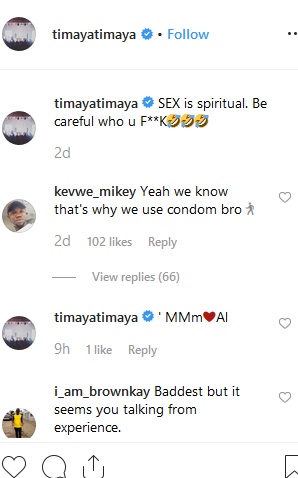 Nigerian Singer and multi-award-winning Act, Timaya warns that sex is spiritual and as such, one has to be careful who he or she has an affair with.