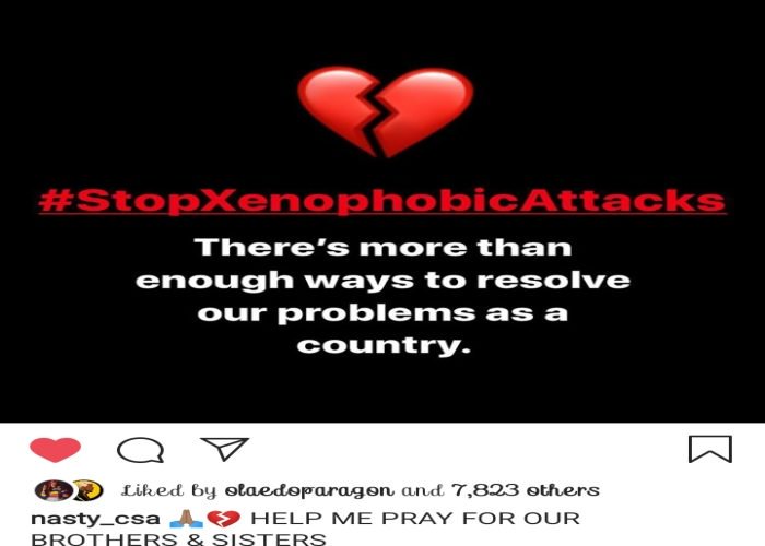 Popular South African rapper Nasty C finally made a post about Xenophobia after Hushpuppi Blast all his South African friends and all the people that have been supporting any South African.