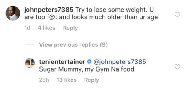 In response, Teni said;