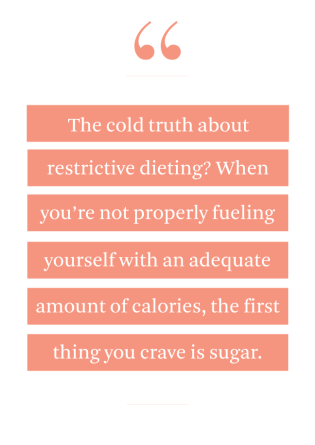 A lunch filled with lean protein and veggies will keep you satisfied longer, which will make you less likely to dive headfirst into the birthday cupcakes being passed around the office. This Clean Eating Chicken Apple Salad by The Gracious Pantry is a simple weekday lunch option. Protein keeps you satisfied by reducing ghrelin, that pesky hunger hormone that gives you the false sense that you might waste away if you don’t quickly reach for a handful of candy. The cold truth about restrictive dieting? When you’re not properly fueling yourself with an adequate amount of calories, the very first thing you crave is sugar. Go figure.