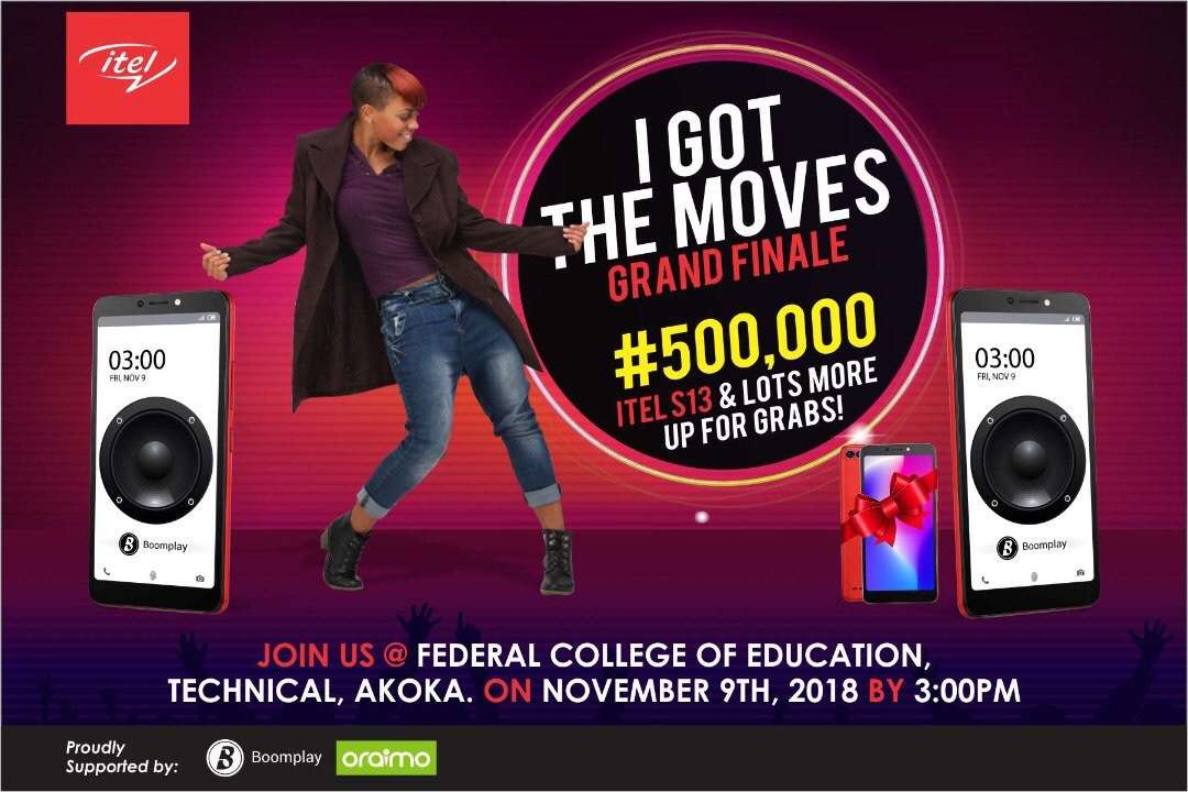 Earlier in the competition, fans were instructed to participate in the #iGotTheMoves competition by posting a one-minute video of them dancing to the itel S13 theme song, while using the hashtags #iGotTheMoves #itelMobile. Winners were presented with latest most sought after selfie smartphone – itel S13, and goodie bags. On the offline space, itel Mobile visited tertiary institutions like Ahmadu Bello University, Adekunle Ajasin University, University of Ibadan, Lagos State Polytechnic, Yaba College of Technology, Lagos State University as well as Federal University of Agriculture, Abeokuta and presented 9 finalists across the schools, with a sum of N50,000 each.