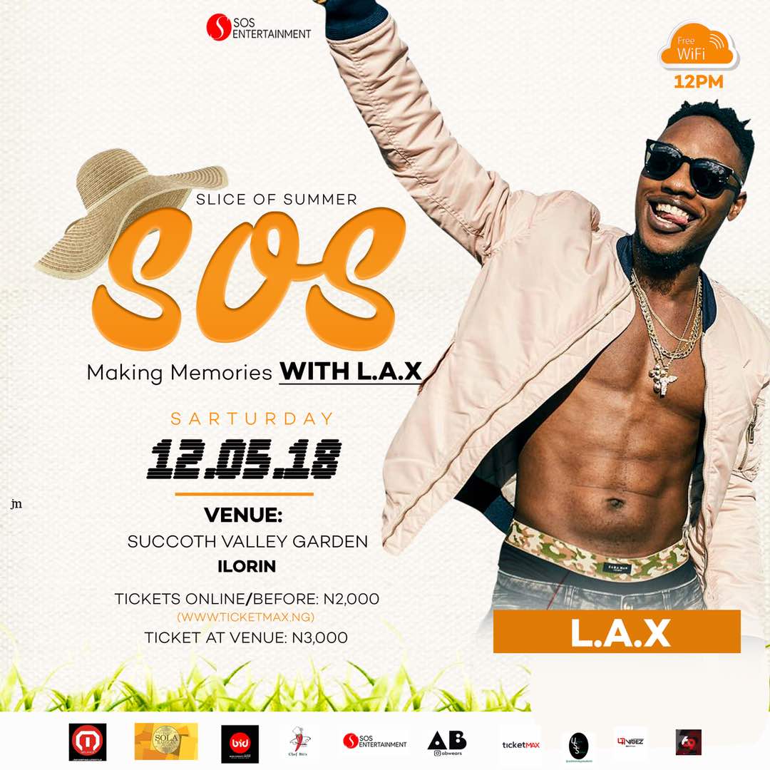 LAX, one of Nigeria’s top musical artist is set to headline the biggest outdoor event in Ilorin, Kwara State tagged Slice of Summer 2018 which holds on 12th May 2018 at Succoth Valley Garden.