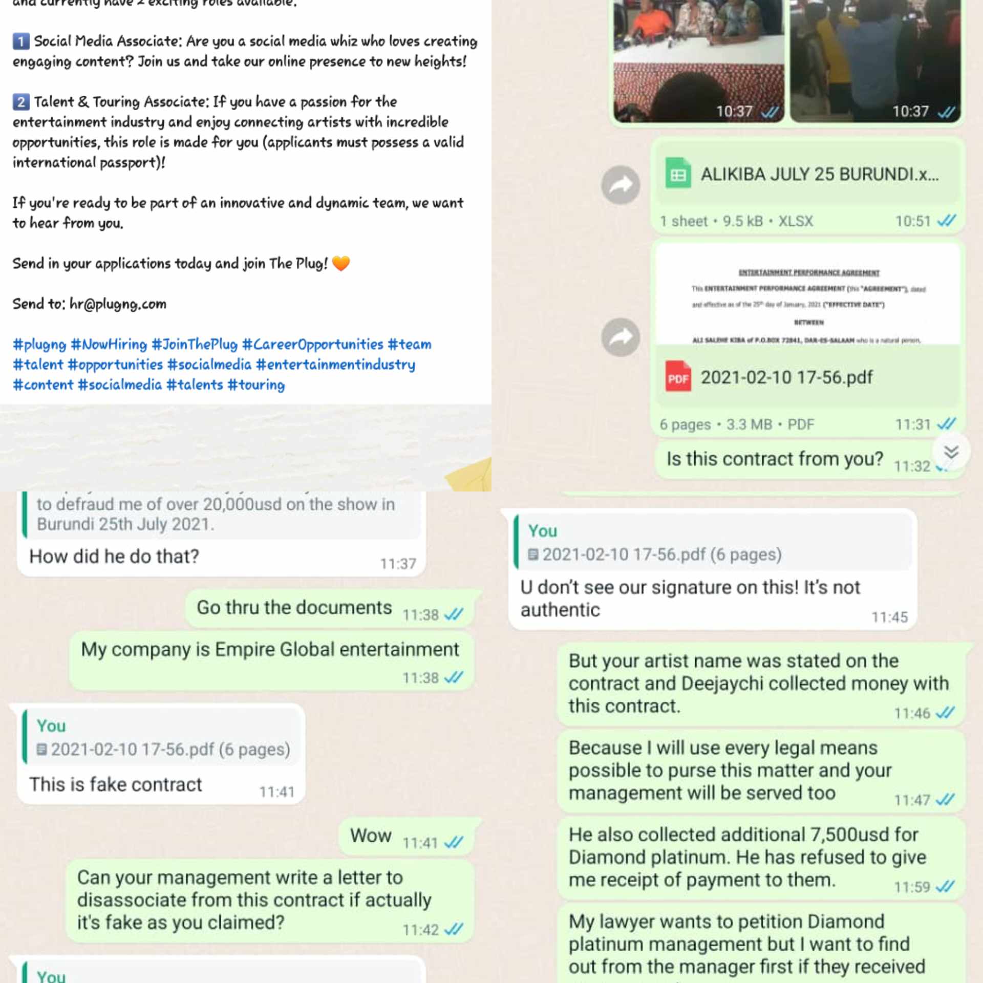 Acknowledging the potential opportunity, Emperor expressed skepticism based on prior encounters with individuals associated with their label who allegedly embezzled funds. The individuals was identified as Mr. DEMOLA ADEYENI OLUFOWOBI and Mr. Omogbai Michael, also known as Rockwaider.. Emperor firmly decided not to pursue any association with Mr. Chukwubuike, citing his connection to Anthem and their reluctance to engage with anyone associated with such individuals.