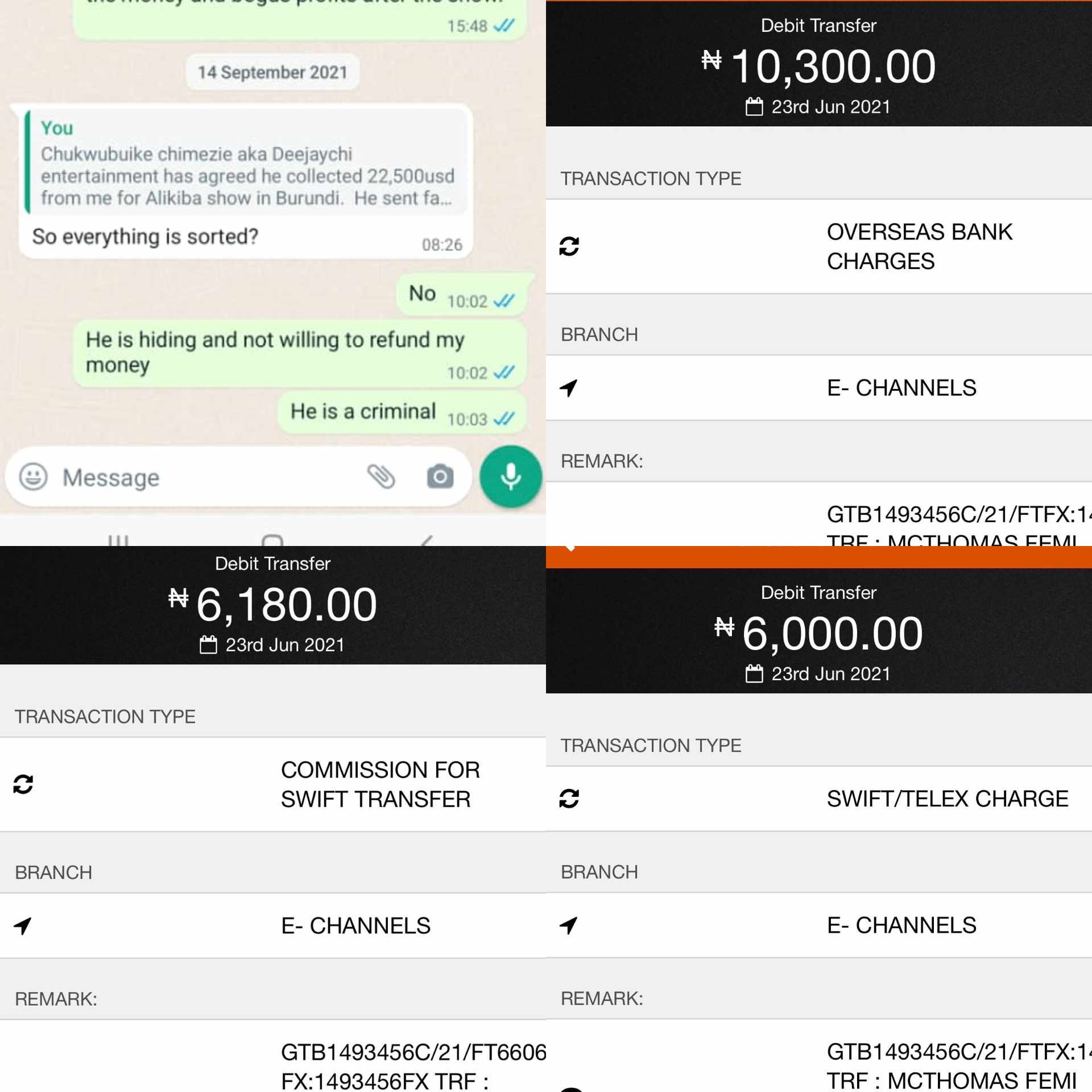 Not content with a single instance of fraud, Mr. Chukwubuike proceeded to deceive Emperor once more, collecting an additional $7,500 under the pretense of an initial contribution towards a Diamond Platinum show in Gambia. Regrettably, he failed to refund the amount to date. Recognizing the scam and the illegitimacy of these engagements, Emperor chose not to pursue any further involvement. Subsequent investigations revealed a trail of similar cases involving Mr. Chukwubuike, wherein innocent individuals fell victim to his deceptive schemes. Despite his claims, Mr. Chukwubuike never possessed the financial means to organize the shows he purportedly arranged, parading himself with A-list artists falsely attributed to his bookings.