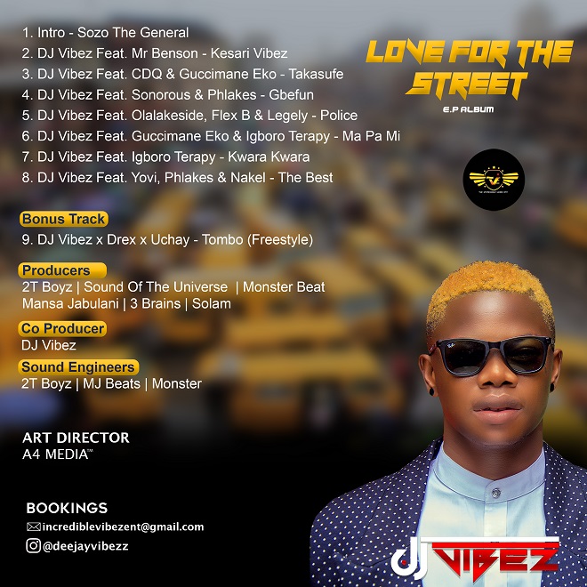 Love For The Street Brings Together The Best Of Street Hop On One Play. It’s An Upbeat EP-Album With Songs To Make You Catch Your Groove From Beginning To The End. It’s Up-Tempo, Hot And Breathtaking! The Street Is Indeed Taking Over As Every Song Is A Monster Hit! Every Artiste On This E.P Brought Their Best To Make This One-Of-A-Kind Album. It Is Only The First Of Many Fantastic Projects From The Street-Certified Incredible Dj Vibez.