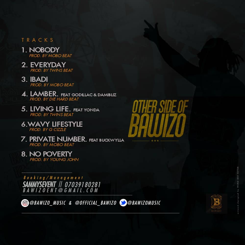 Following the registering of his record label Bawizo Entertainment, music icon Bawizo has dropped a couple of songs “No poverty” and “Wavy Lifestyle” that broke the internet. The versatile artist drops this EP titled The Other Side of Bawizo. Check on it!