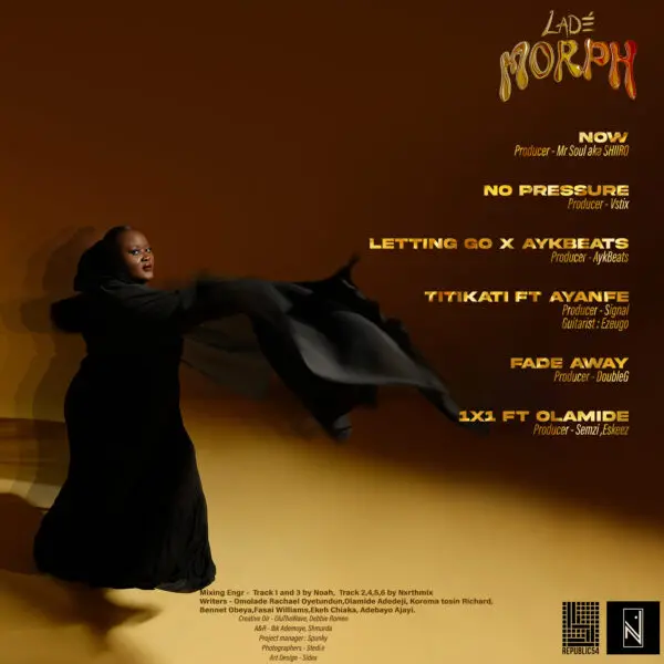 MORPH is more than just an album; it is a meticulously crafted body of work that serves as a mirror to LADÉ’s evolution, a journey that reflects her resilience, self-discovery, and artistic boldness. This six-track collection balances her signature Afro-fusion style with fresh influences, offering an immersive, genre-blurring experience that reveals the artist’s diverse creative palette. From the high-energy celebration of “NOW” to the introspective tones of “Letting Go,” each song is a chapter in LADÉ’s story of transformation.