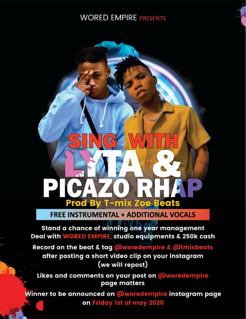 Record a one minute video of your verse and tag @WoredEmpire and @Tmixbeats and also include the hashtag #SingwithLYTAandPICAZO