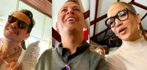 Alex Rodriguez sandwiched between Jennifer Lopez & Marc Anthony