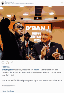 Nigerian Legend Dbanj Gets BEFFTA Entertainment Icon Award In London