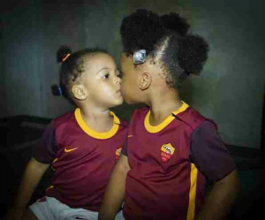 Adorable photo of Flavour’s daughters kissing each other in matching outfits