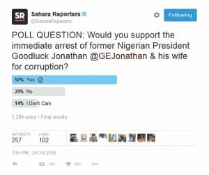 Twitter Poll Reveals Majority Of Nigerians Want Goodluck Jonathan & Wife Arres...