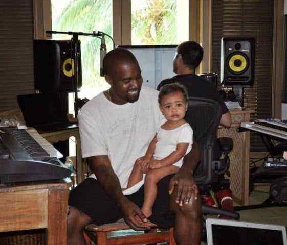 Kim Kardashian shares Picture of Husby & Baby in a Music Studio