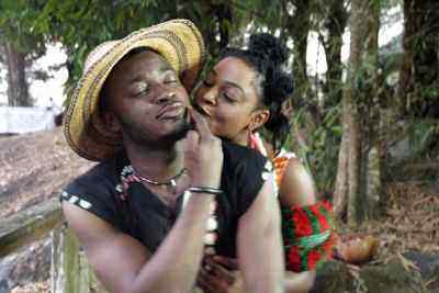 Nigerian Celebrity Mc Galaxy poses with US rapper 2Chainz