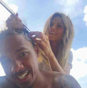 Heidi Klum shows of her home girl side as she braids Nick Cannon’s hair (Photo)