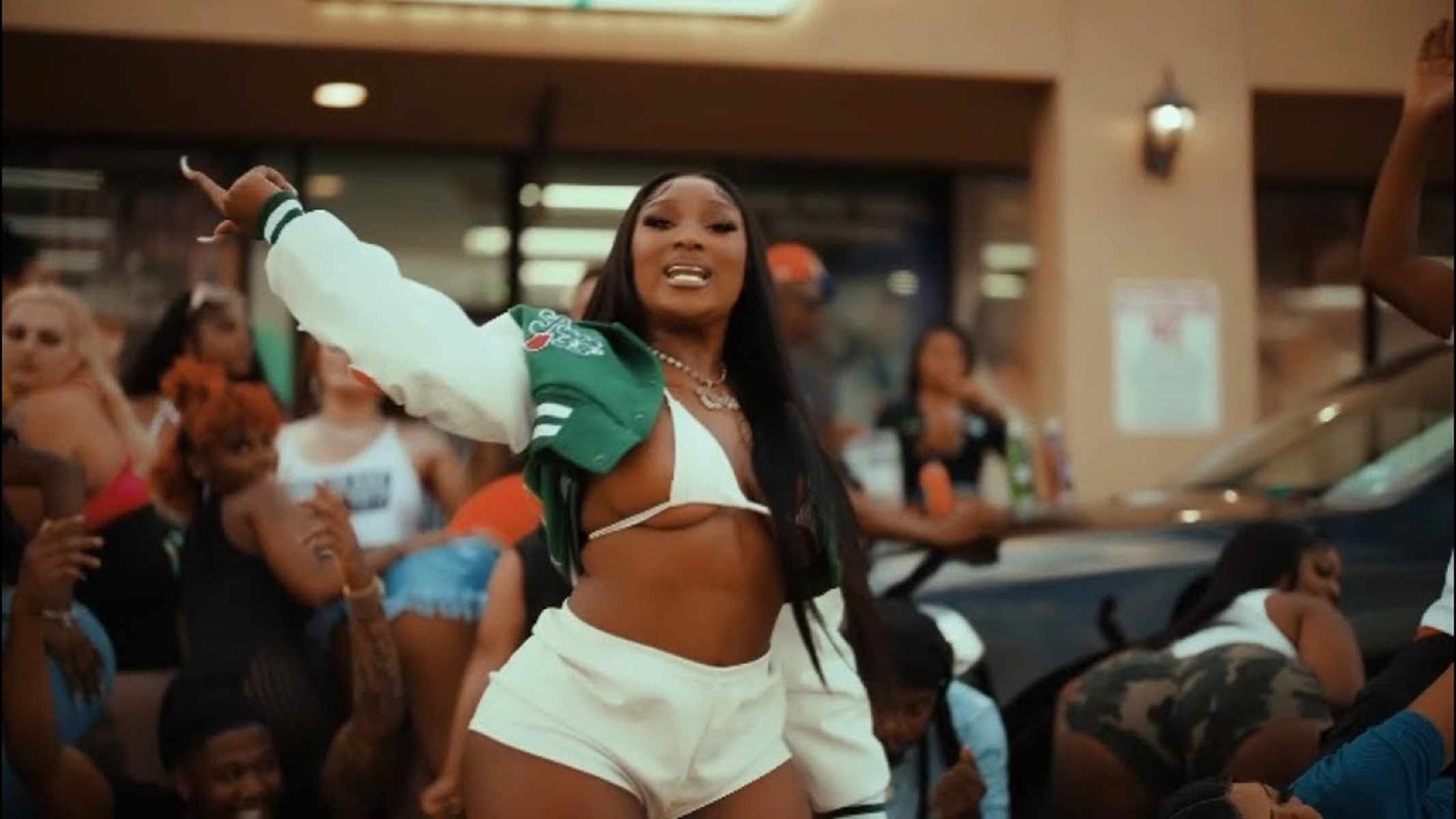 In “Poppin Or Not,” the Texas native calls out fake people leaving messages in her DMs while twerking in tiny white shorts and a barely-there bikini top. Her look comes complete with a Playboy letterman jacket, grills, and finally, weapon-like nails that only prove how serious she is about warning her haters. “Runnin’ your mouth on the net and I heard it, it’s cute,” she sassily spits.